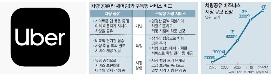 글로벌 완성차 수요 감소는 최근 세계 자동차산업은 우버 등으로 대표되는 공유경제의 확대와 관련이 적지 않습니다. 이러한 변화는 소비자가 점차 자동차를 소유하는 재화라는 인식에서 이용하는 서비스로 인식이 전환되어가는 패러다임 시프트가 일어나는 중으로 해석될 수도 있습니다.