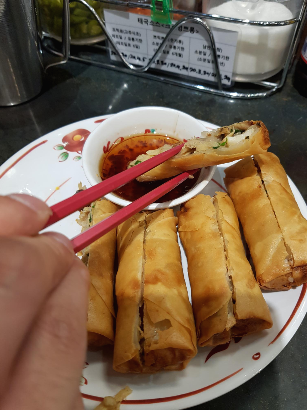 바깥쪽은 얇은 피가 튀겨져서 바삭바삭해요