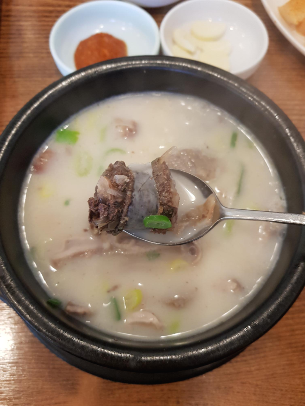 저희 아빠는 항상 뽀얀 국물에 드시는데