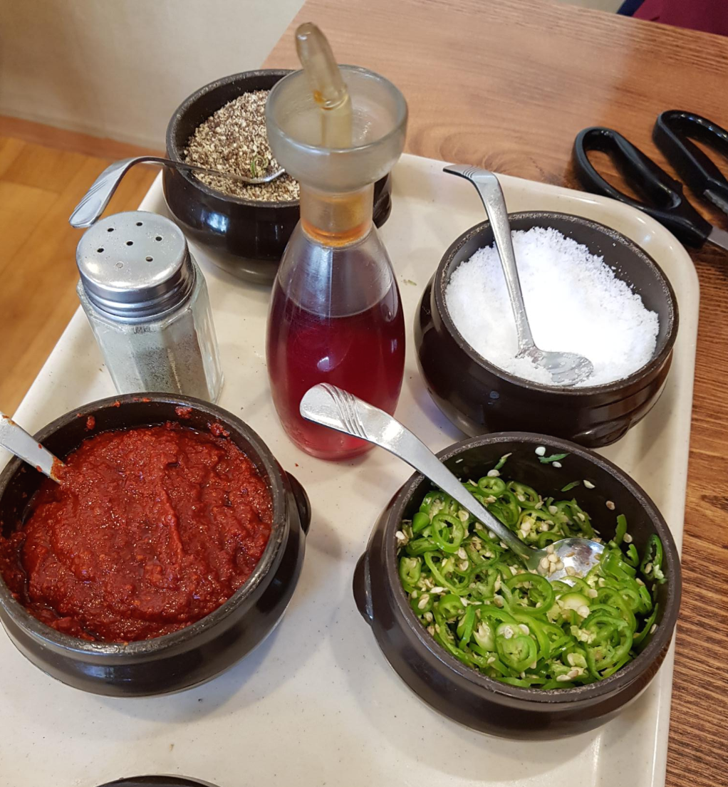 양념장, 후추, 소금, 들깨가루, 고추, 고추기름