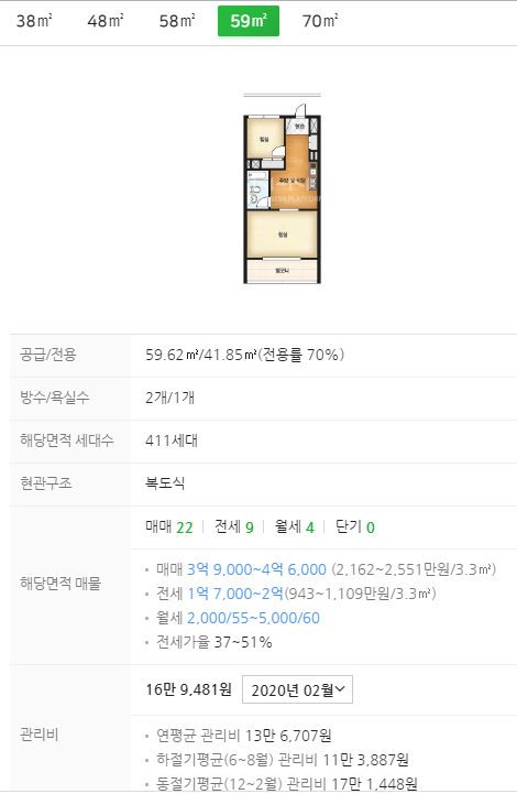 면적 타입: 38㎡, 48㎡, 58㎡, 59㎡, 70㎡ |