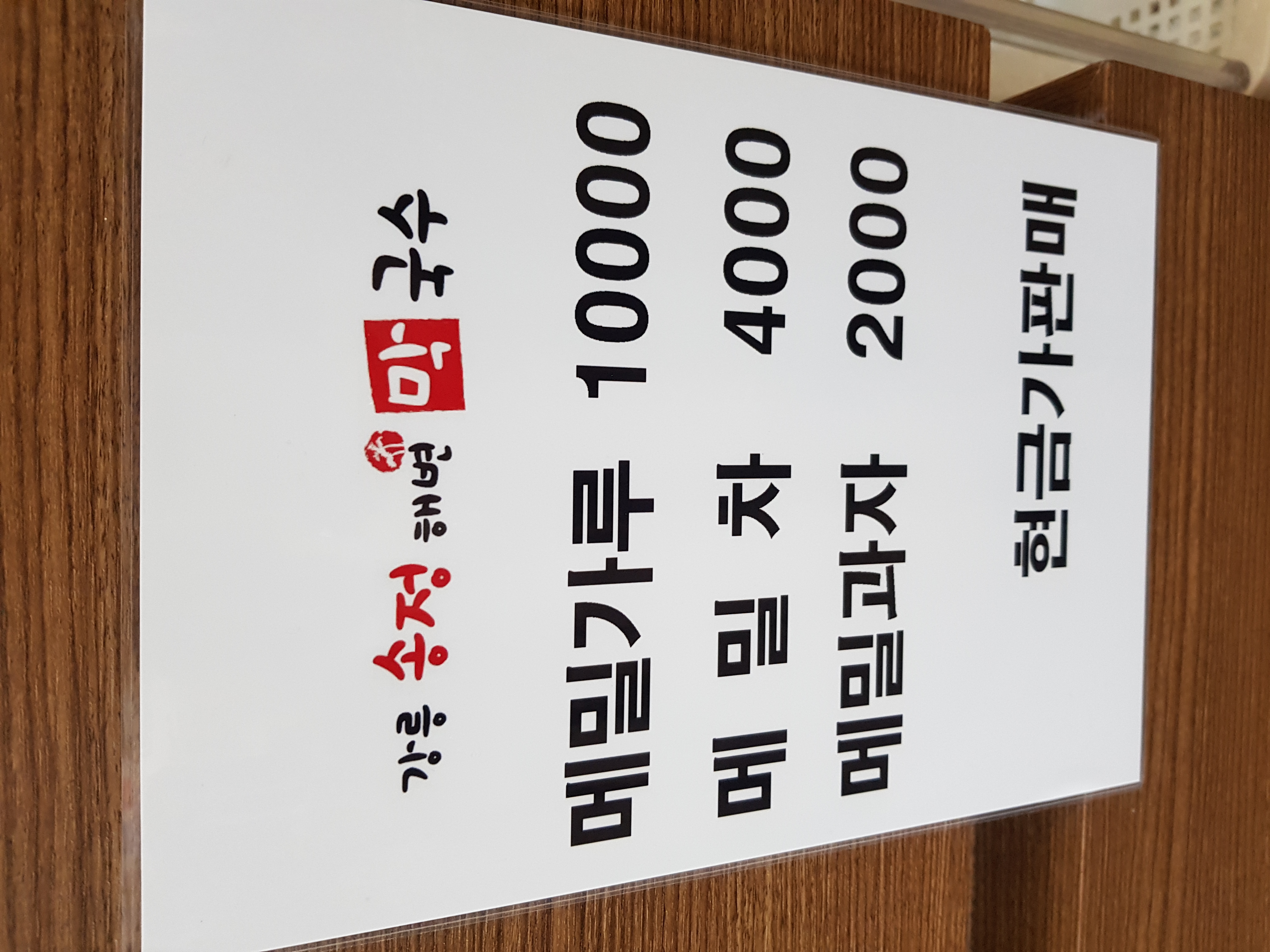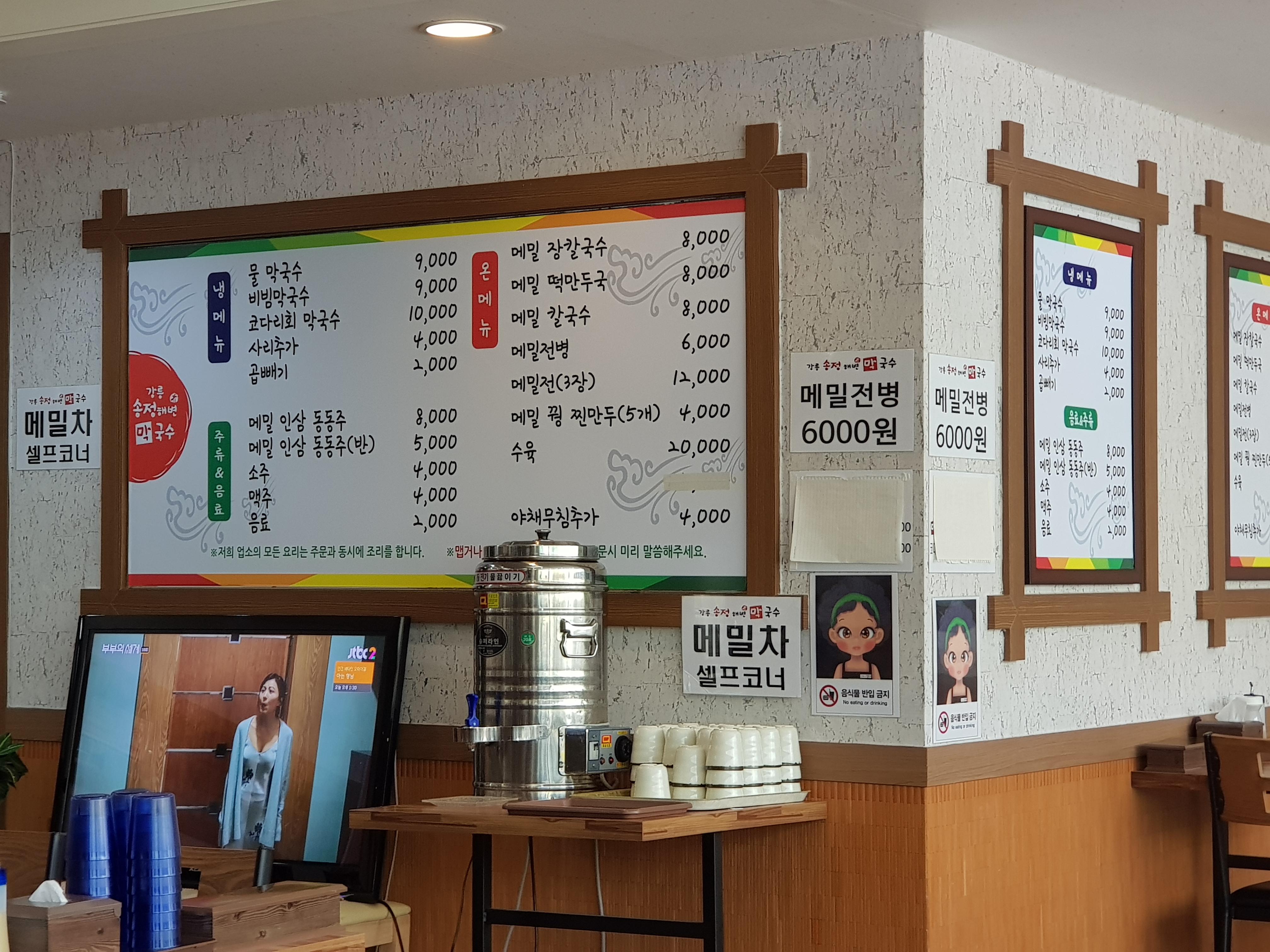 송정해변막국수 집의 메뉴판