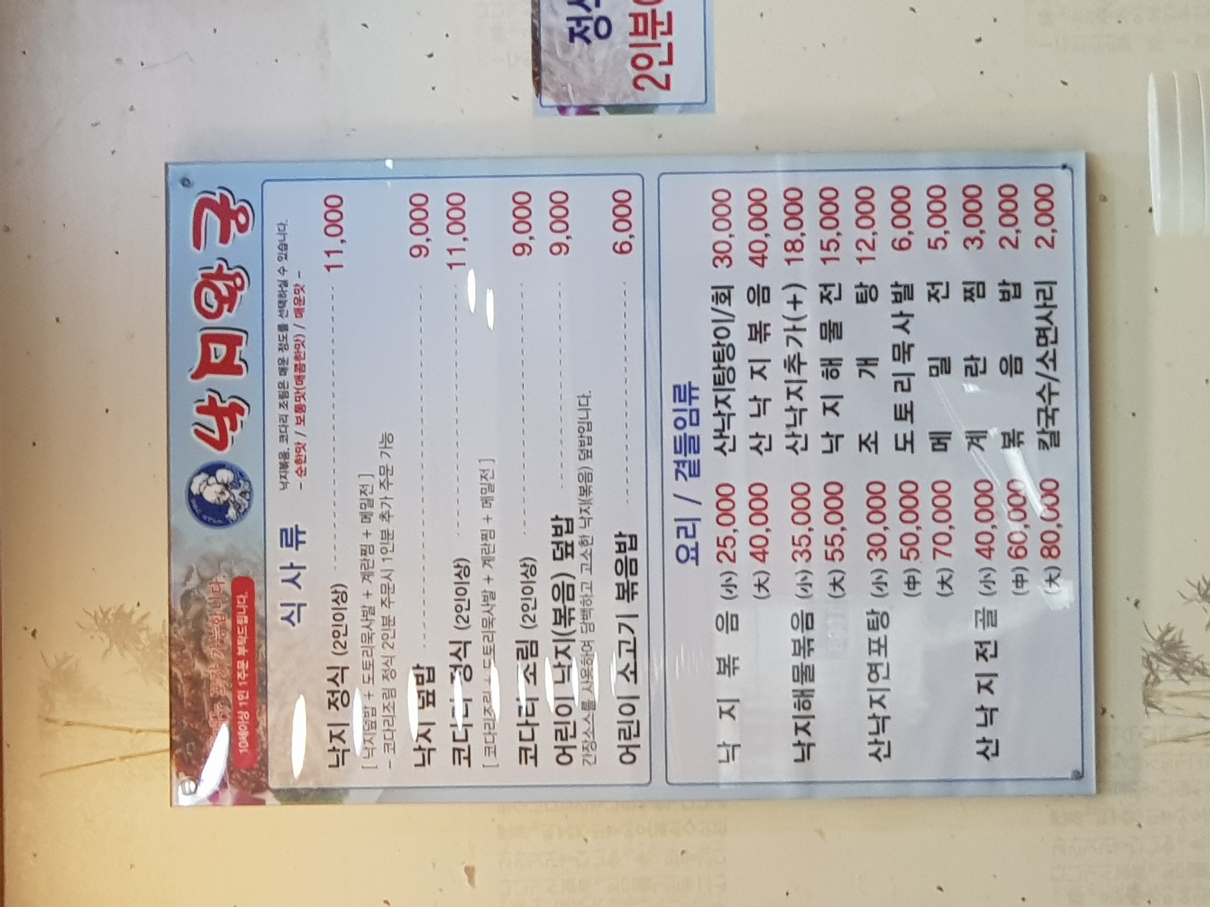 낙지정식 2인분을 주문했어요: )