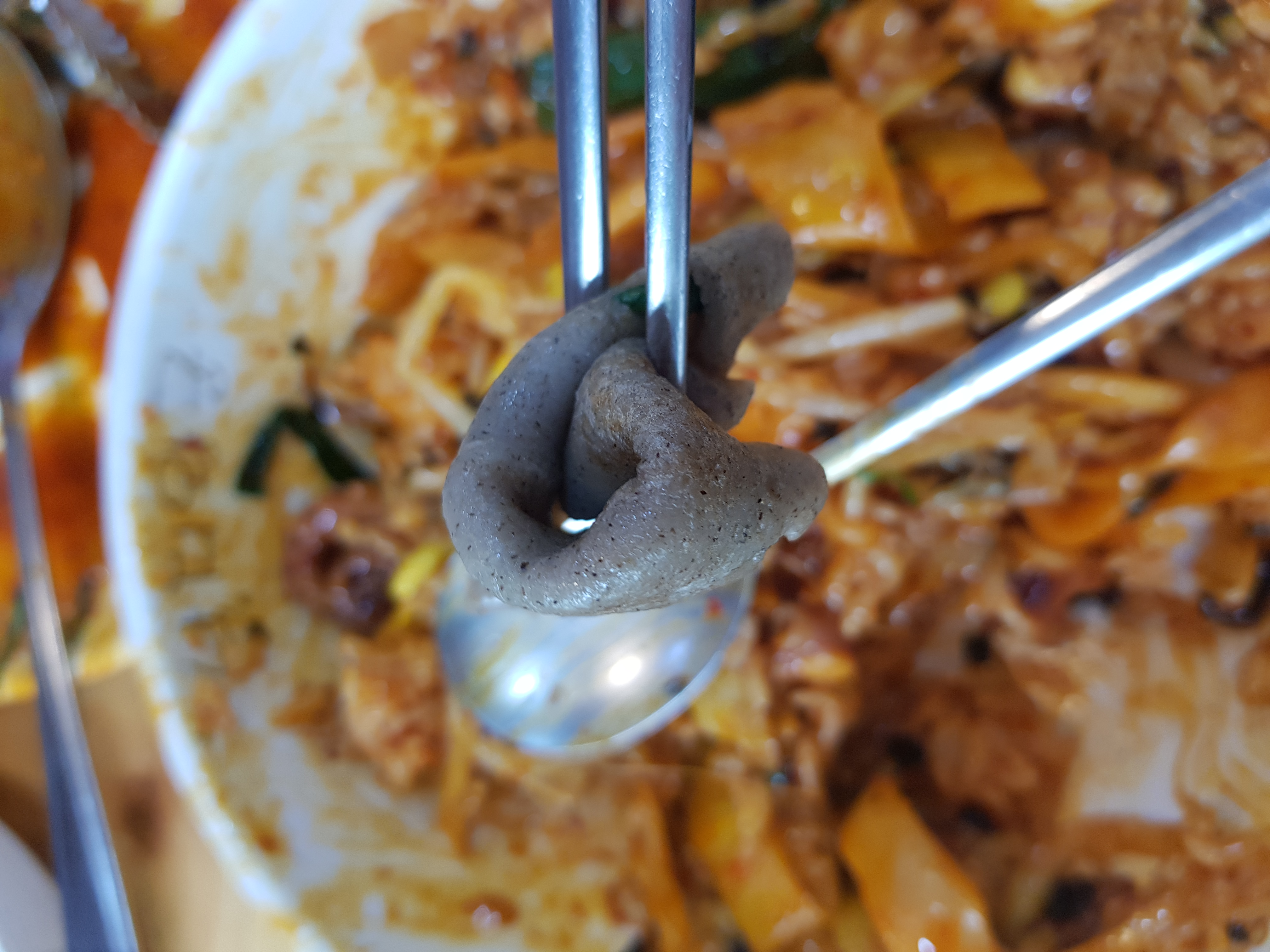 뭔가 양념이 지저분하게 묻어있는